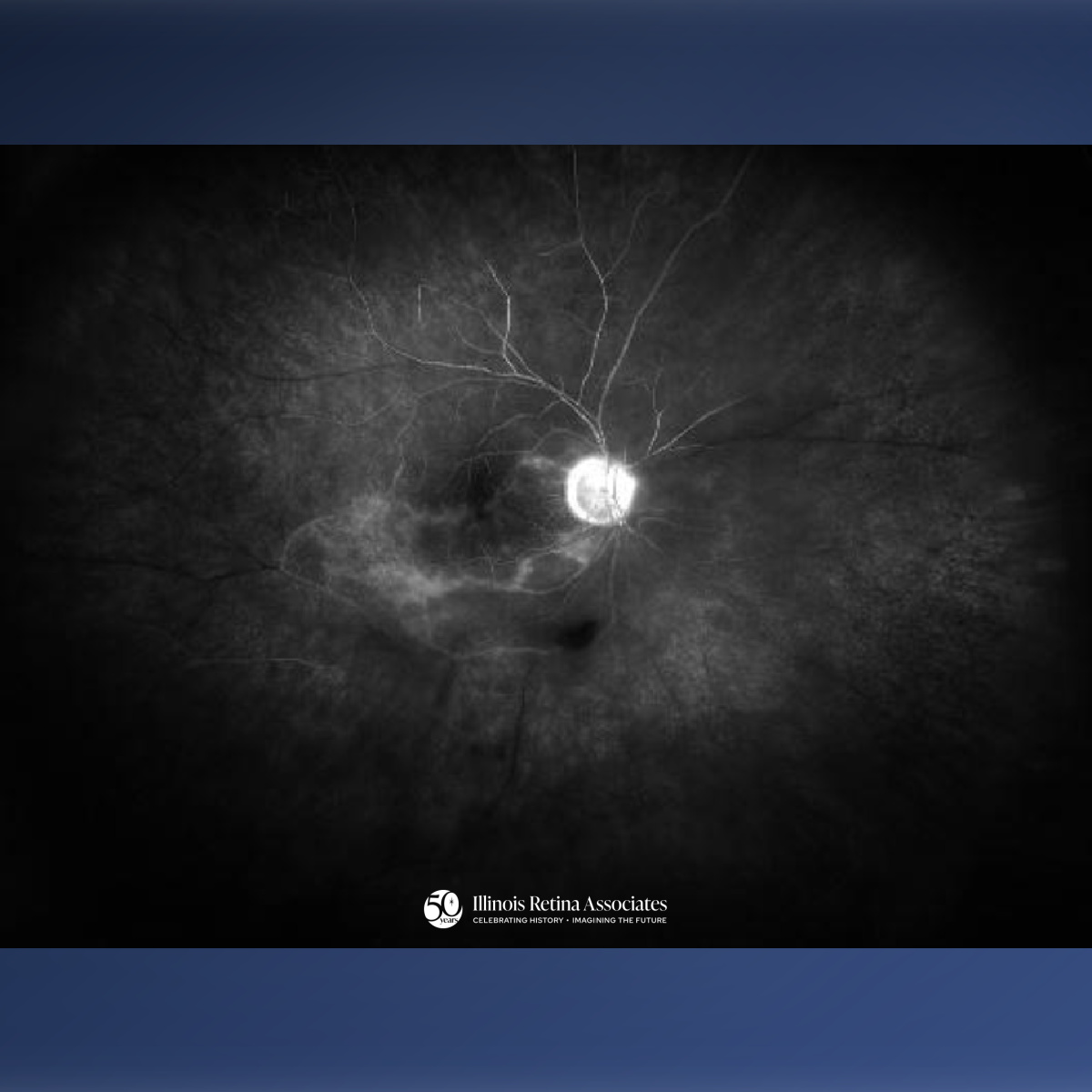 A 91-year-old patient presented with sudden onset right eye vision loss of 2 days. The patient reported only a “spot” remaining in the right eye vision with no issues of the left eye. No recent surgery or trauma.